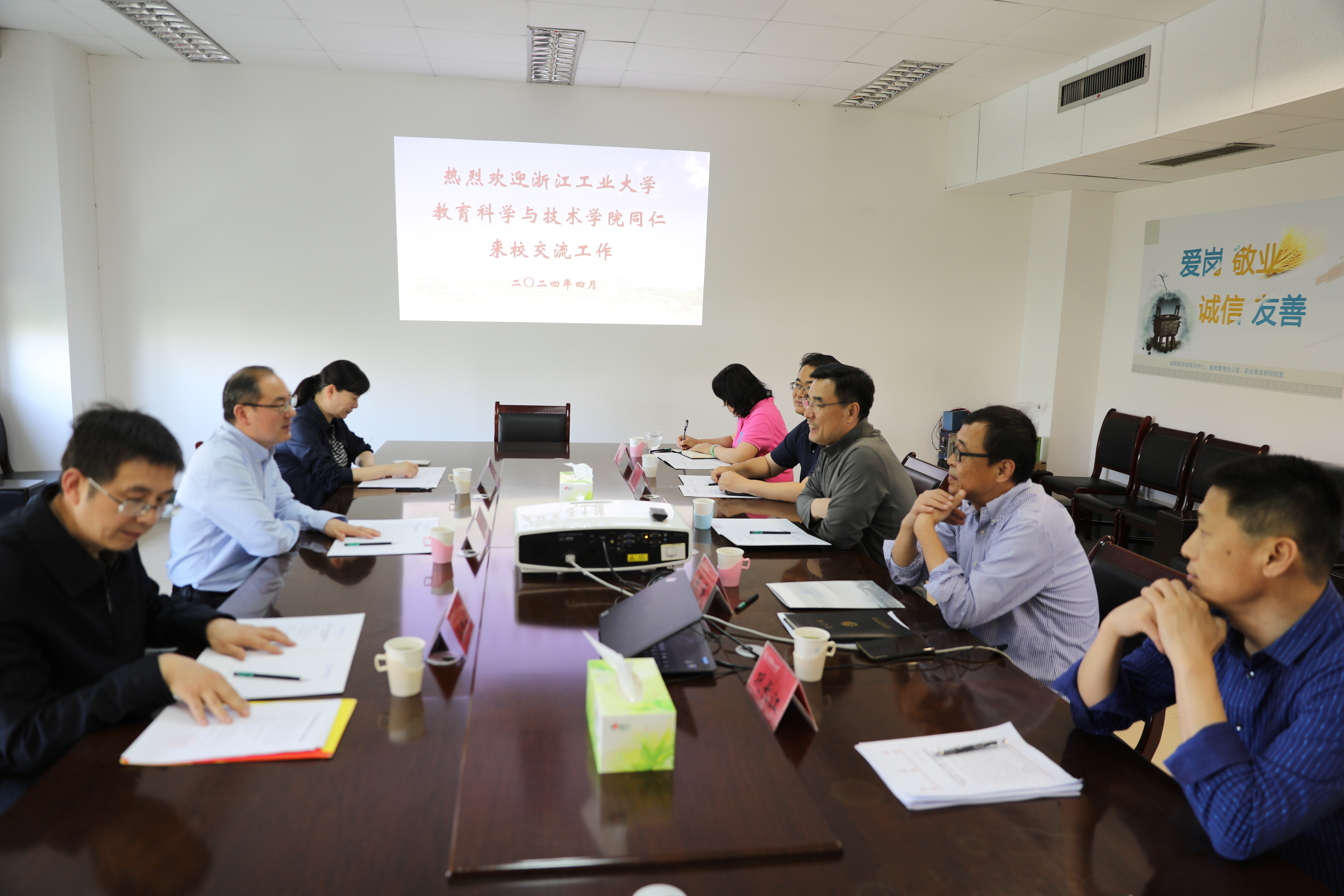 4月25日下午,浙江工业大学教育科学与技术学院吴向明院长一行3人来校考察交流。校党委常委、副校长崔焕勇和省职教中心相关工作人员在鸿远楼四楼会议室与客人就职业教育师资培养相关情况进行座谈。