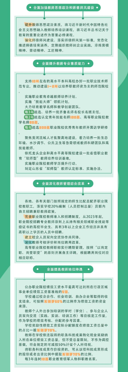 近日,山东省教育厅等5部门印发《山东省深化新时代职业教育教师队伍建设改革实施方案》(以下简称《实施方案》),现将有关政策解读如下。